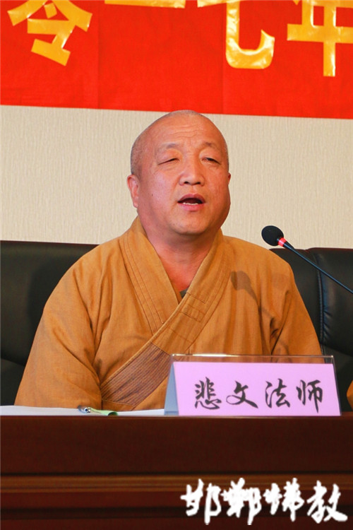 邯郸市佛教协会领导仁秀法师、会空法师、究成法师、悲文法师、法达法师、宋宝顺居士、传涵法师、通恒法师在主席台就坐并讲话。